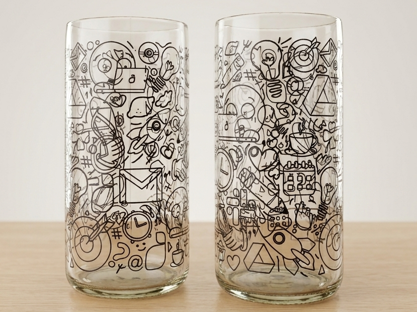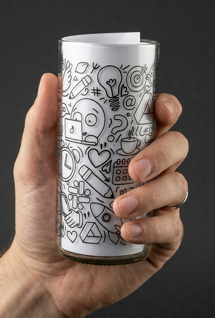 Diseño gráfico personalizado para una serie limitada de vasos reciclados hechos por GreenGlass. La propuesta visual representa la identidad de Lemontech con un enfoque limpio, profesional y alineado a los valores de la empresa.